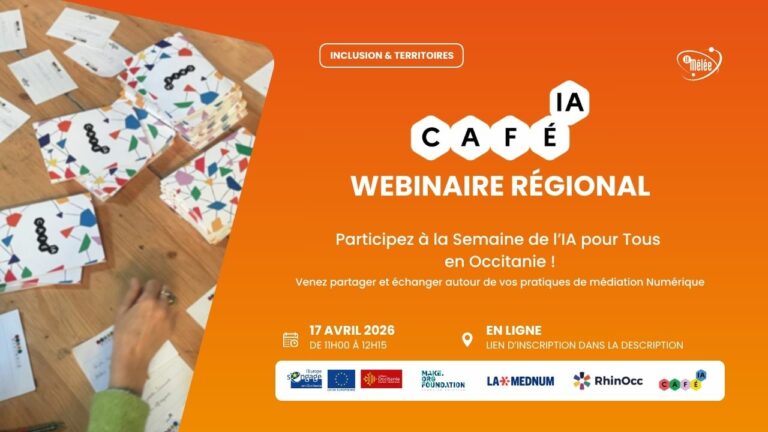 Dans le cadre de la Semaine de l’IA pour Tous, nous vous proposons un webinaire à destination des professionnels de la médiation numérique et ceux qui souhaitent se mobiliser pour organiser des Cafés IA autour d’eux en vous donnant des repères et des ressources et un espace d’échange entre pairs.